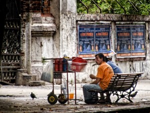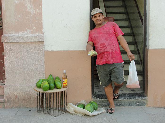 Entre los “nuevos negocios” a los cuales han acudido los cubanos bajo las condiciones legales recientemente aprobadas, dos sectores han resultado los más recurridos: la gastronomía y la venta de productos agrícolas en todos los puntos de la ciudad. La avalancha de cafeterías,pequeños restaurantes y vendedores callejeros y ambulantes (que necesitan una mínima o ninguna inversión previa) han introducido un ambiente de creatividad y movilidad que, en el aspecto físico, va dando al entorno urbano una imagen de feria de los milagros en la que cada cual vende lo que puede y como puede: las cientos de cafeterías (y uno se pregunta: ¿habrá clientes para todas esas cafeterías, en un país donde la mayoría de los salarios, como ya se ha dicho, apenas garantizan la subsistencia?) brotadas en cada esquina, en portales, o locales rústicos, casi siempre surgen sin la menor sofisticación y con la característica de que los alimentos adquiridos se consuman de pie, en las aceras, ofreciendo una imagen de provisionalidad y pobreza que resultan dolorosas.