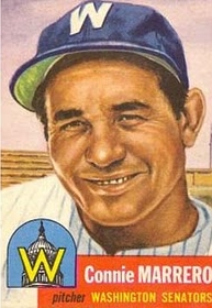 Conrado Eugenio Marrero Ramos [″Connie″] (born April 25, 1911) is a former Cuban professional baseball pitcher. The right-handed Marrero pitched in Major League Baseball from 1950 to 1954 for the Washington Senators. Marrero made his major league debut when he was 38 years old, and was one of the oldest players in the league throughout the duration of his time in the major leagues. He was a popular star in his native Cuba, where he had a long and successful career in amateur baseball, pitching for Cuba in several Amateur World Series competitions, and playing several excellent seasons with the professional Cuban League and the minor league Havana Cubans. His nicknames in Cuba were “El Guajiro de Laberinto” (The Peasant from Laberinto), reflecting his rural origins, “El Premier,” and “El Curvo.”