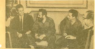 Year and a half late,on 17th December 1964 after attending the UN General Assembly in New York, Che set off for Algeria for a second time, responding to an invitation made by that country’s government. In an interview given to the Révolution Africaine (African Revolution) weekly , he pointed out that “the liberation struggle cannot be only a defensive fight but also an offensive struggle against imperialism.” On 23rd December 1964 in the halls of Algiers’ Palace of the People, Che says a few words to a group of young Algerians.