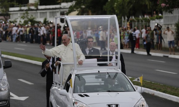 Some 100,000 people, according to EFE, took to the streets of Havana for the pope Francisco after the welcoming ceremony at the Jose Marti airport, marked by political messages.