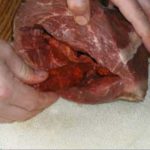 Cut a slit in the meat.