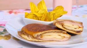 Served in the same sweet, eggy bread as the Medianoche (midnighter) sandwich–sometimes called Pan Suave (sweet bread) or simply Pan de Medianoche–her sandwich consisted of cream cheese, thin-sliced turkey, and strawberry jam lightly toasted in a plancha.